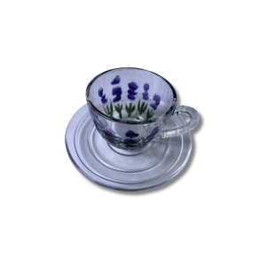 Xícara Com Pires de Vidro 220ml Lavanda Hand Painting – Lyor