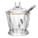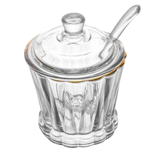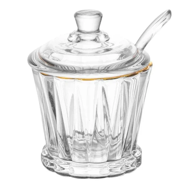 Açucareiro em Cristal Radial com Colher 210ml Filete Dourado – Lyor