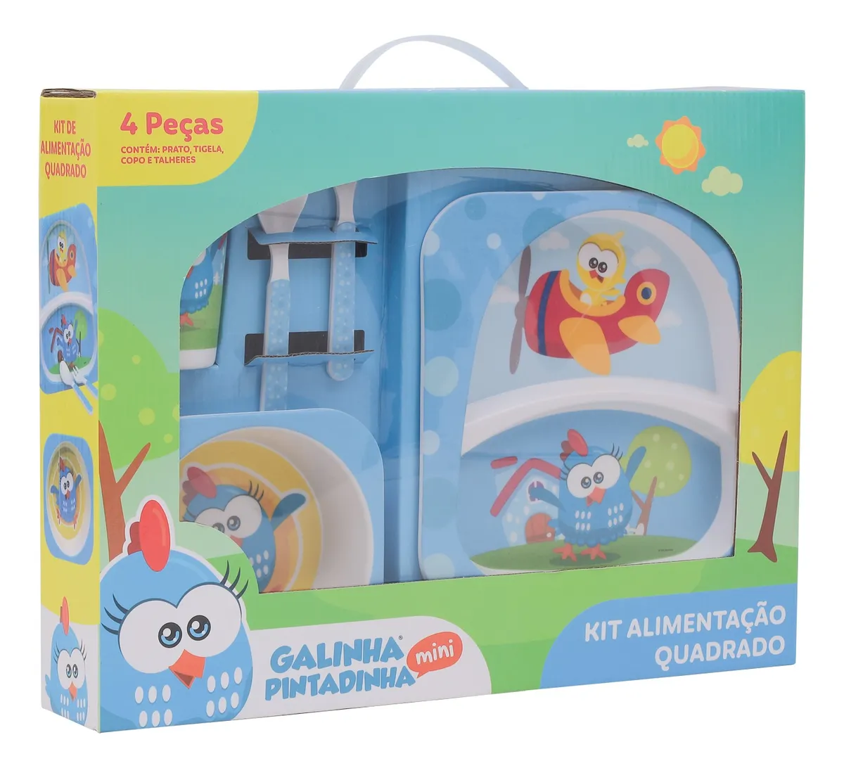 - Design: Apresenta estampas coloridas e alegres da personagem Galinha Pintadinha, o que ajuda a incentivar a autonomia e o interesse da criança pela alimentação.
