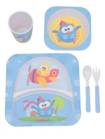 - Material: Os itens são feitos principalmente de melamina. Em algumas versões, a composição pode incluir fibra de bambu, o que garante leveza e durabilidade.
