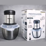 • Capacidade Generosa: Possui um bowl (recipiente) de 2 litros, geralmente em aço inoxidável, o que oferece maior durabilidade e higiene para processar grandes quantidades de uma só vez.
