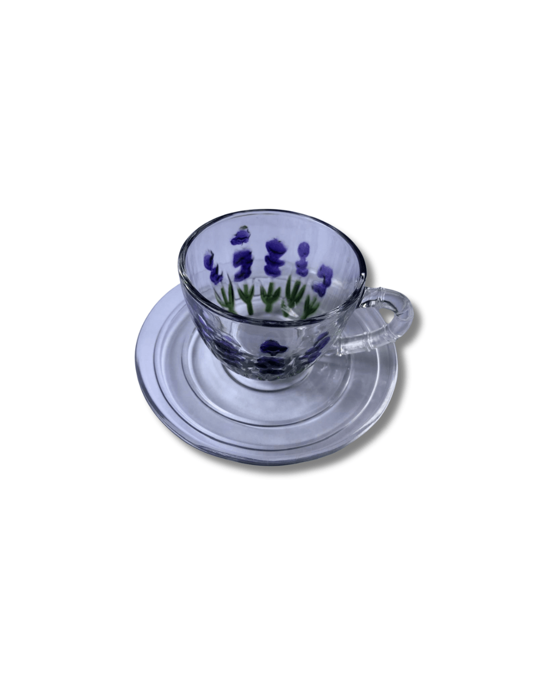 🌷 Xícara Com Pires de Vidro 80ml Lavanda Hand Painting – Lyor: O Charme Artesanal no Seu Café